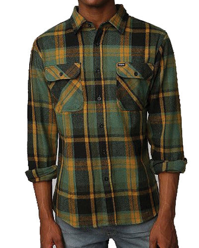 wholesale flannel shirt sports a very unique color combination for otherwise flamboyant madras check patterns. Structured yet relaxed design, button down front and two very distinct pockets with button flaps adds to the no nonsense nature of this shirt. This option works wonderfully with denims of medium to darker shades.
